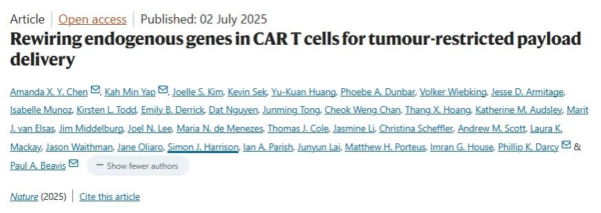 近日,来自澳大利亚Peter MacCallum癌症中心的一个科学家团队在Nature杂志发表了题为Rewiring endogenous genes in CAR T cells for tumour-restricted payload delivery的突破性成果。研究人员利用基因工程技术(CRISPR敲入策略),实现了促炎细胞因子仅在肿瘤部位表达,为实体瘤CAR-T治疗带来了新的突破。